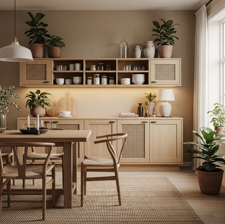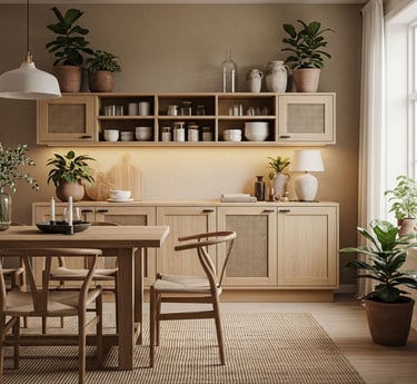 Soft lighting, natural textures, and thoughtful design — our cabinets are made to blend seamlessly into your warm living spaces